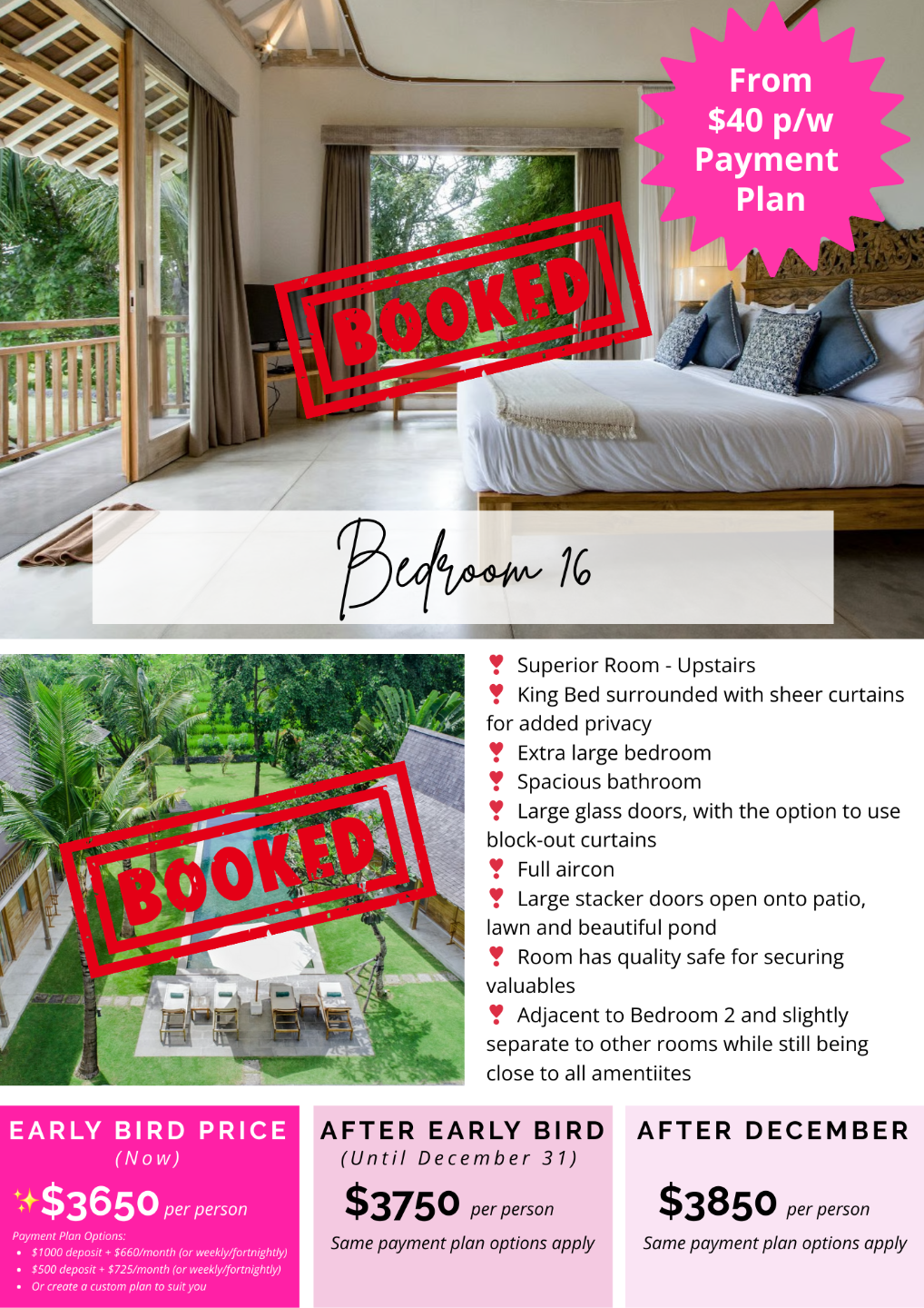 Prices rise in just 4 weeks.. last retreat sold out within two months.Â
