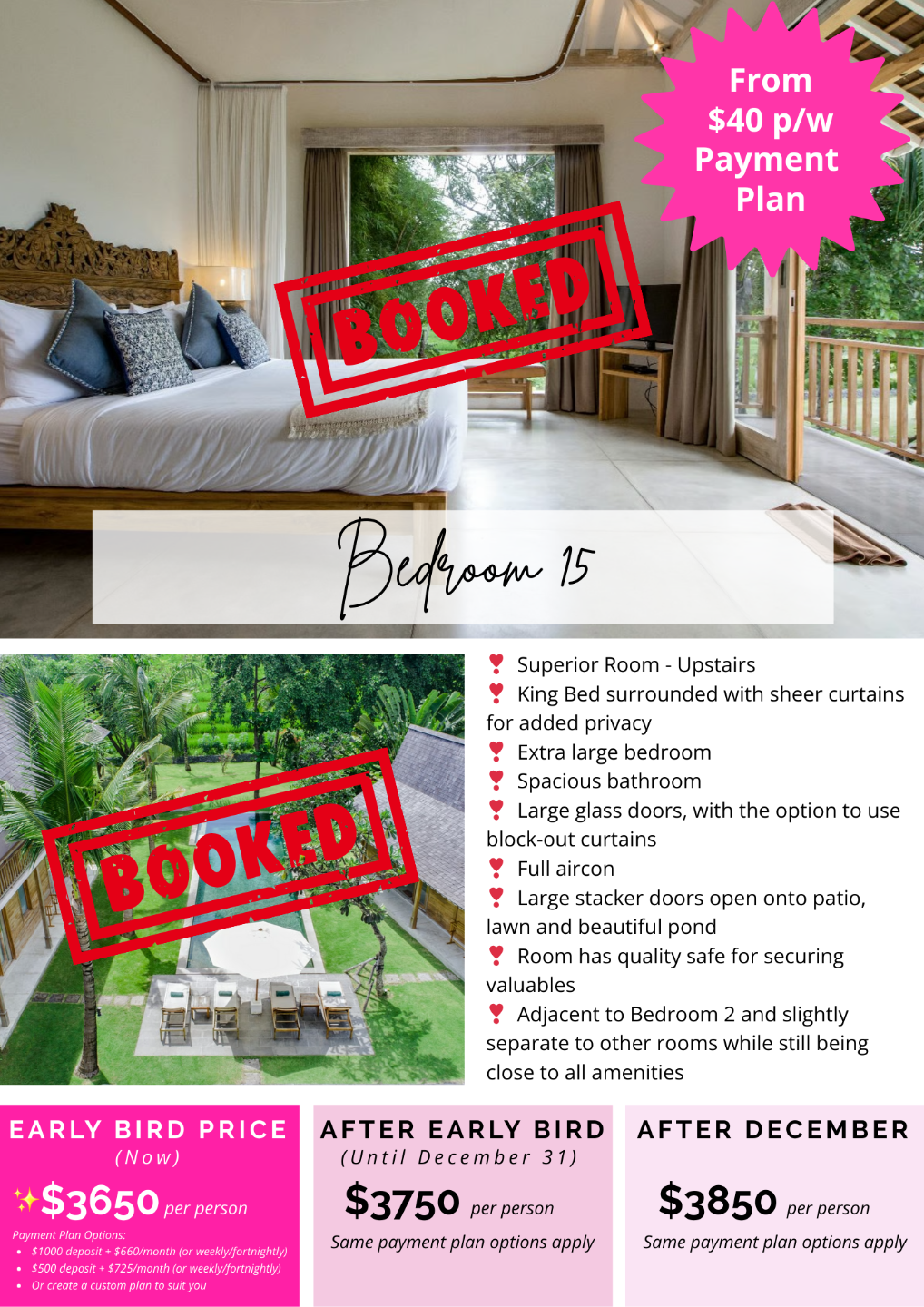 Payment Plans are available on ALL rooms with a minimum of $500 deposit.